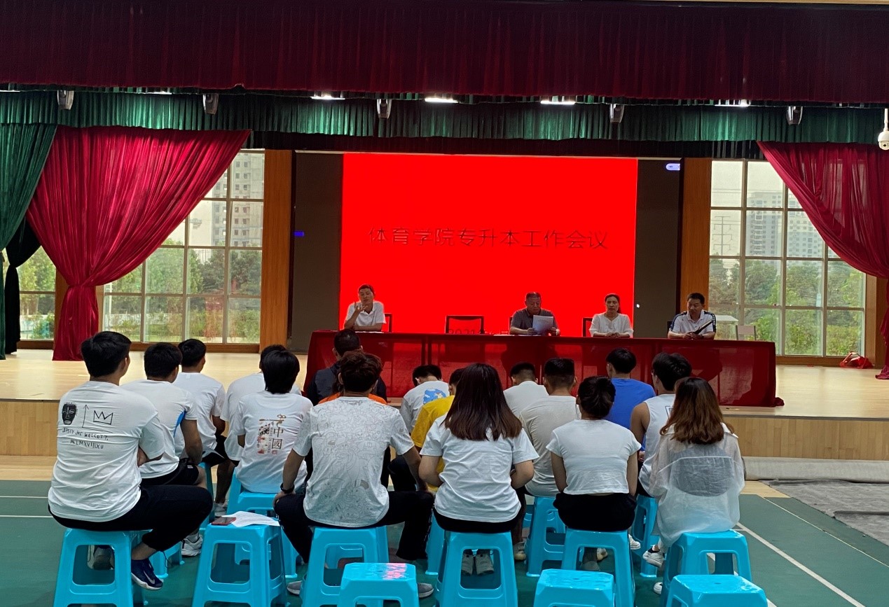 2021年6月2日,我校2021届专升本学生回到熟悉的校园。为迎接专升本返校生,做好专升本学生的安全教育和诚信考试工作。体育学院院长、体育学院副院长王朝霞、体育学院学管办主任李海磊、体育场学院办公室主任袁鹏科出席了本次会议。